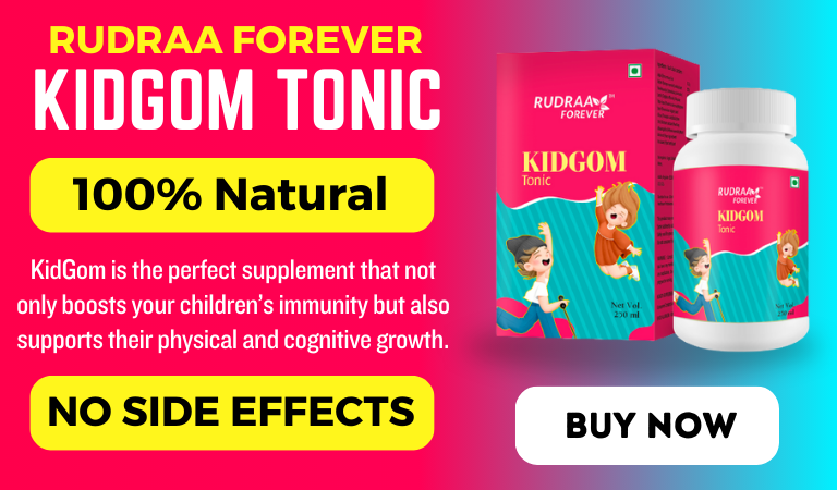 Rudraa forever Kidgom is a natural mixture of herbs and roots that helps in kids' growth. The juice offers several health benefits and fulfills more than the daily requirements. Try it now and let it benefit your child's growth.